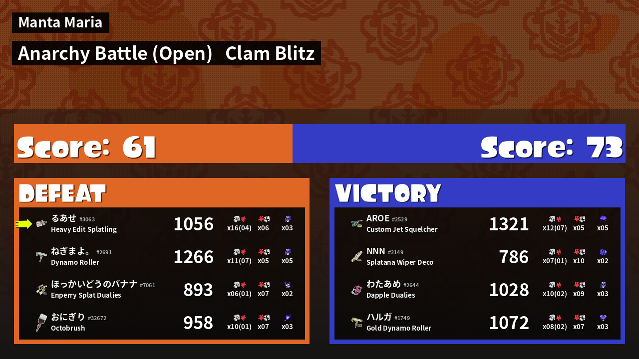 | Mode | Clam Blitz - Anarchy Battle (Open) |