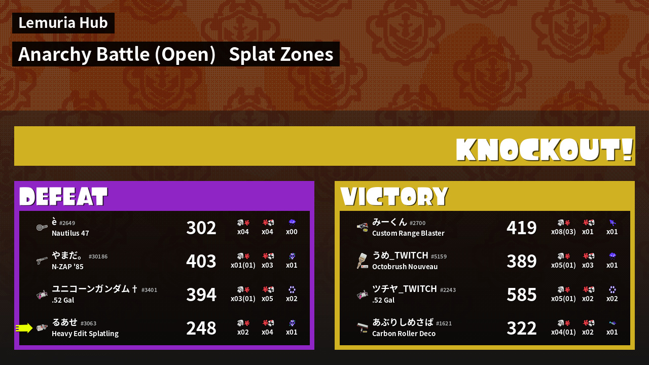| Mode | Splat Zones - Anarchy Battle (Open) |