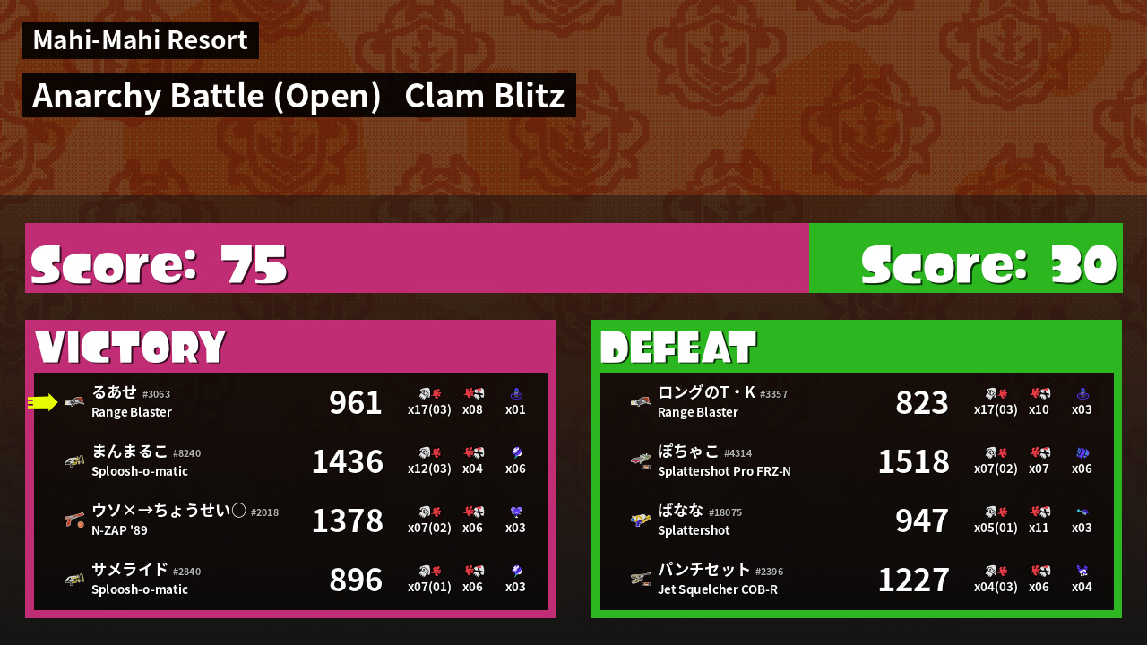| Mode | Clam Blitz - Anarchy Battle (Open) |