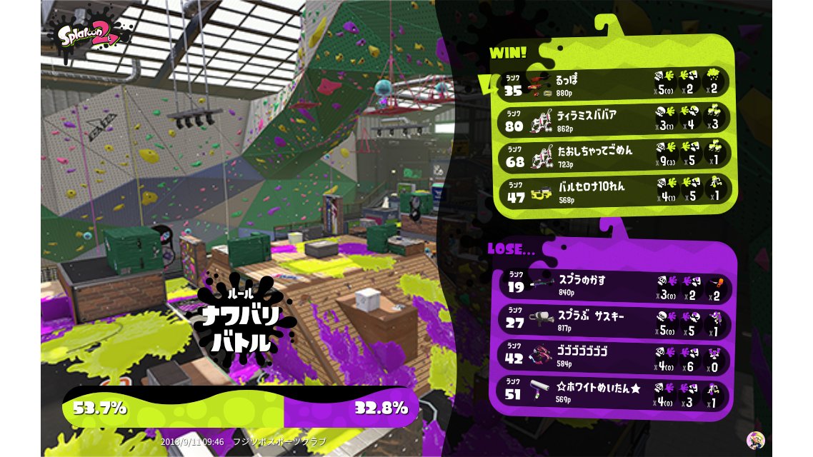 | Mode | Turf War - Regular Battle | ||||||||||||||||||||||||||||