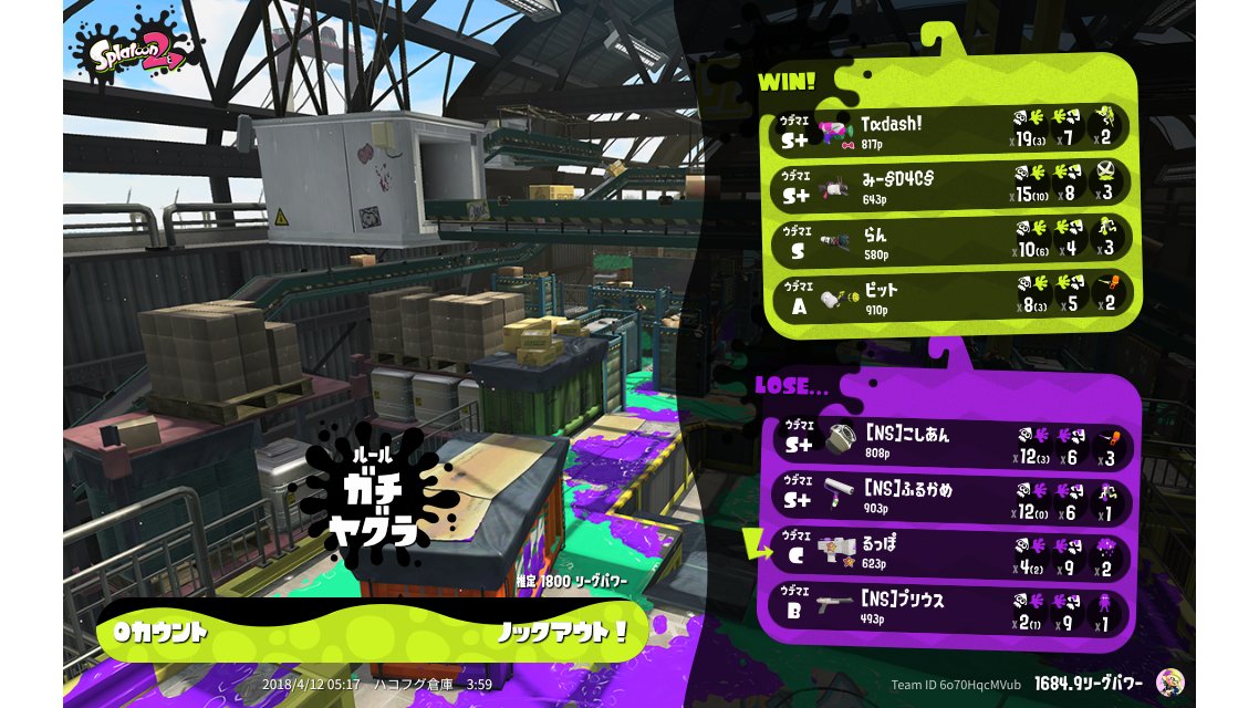 | Name | Weapon | Level | Rank | Inked | k+a/sp | k/d |