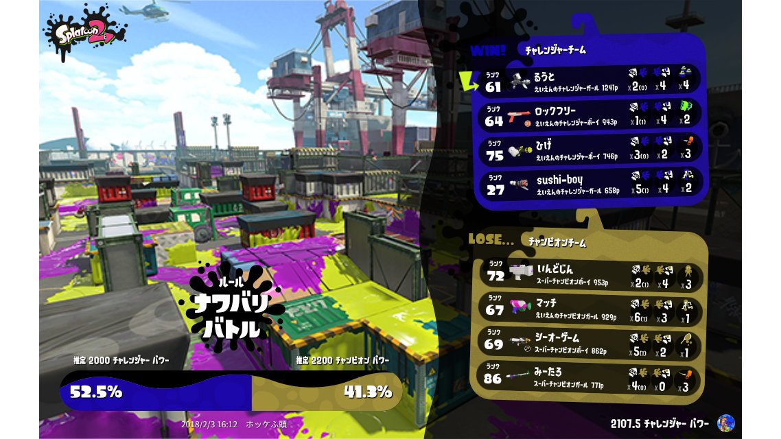 | Splatfest Power | 2,107.5 | ||||||||||||||||||||||||||||||||||