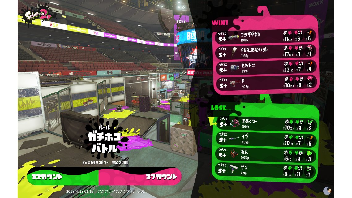 | Name | Weapon | Level | Rank | Inked | k+a/sp | k/d |