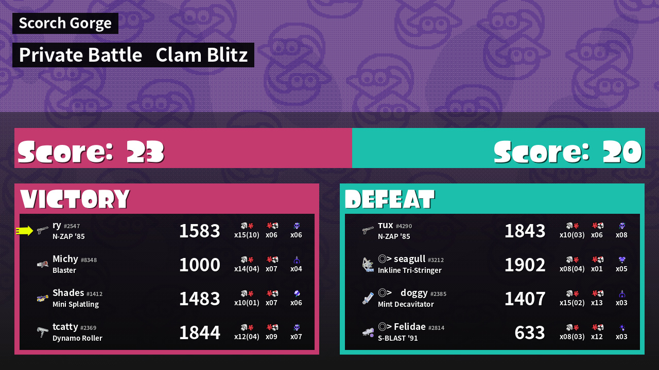 | Mode | Clam Blitz - Private Battle | ||