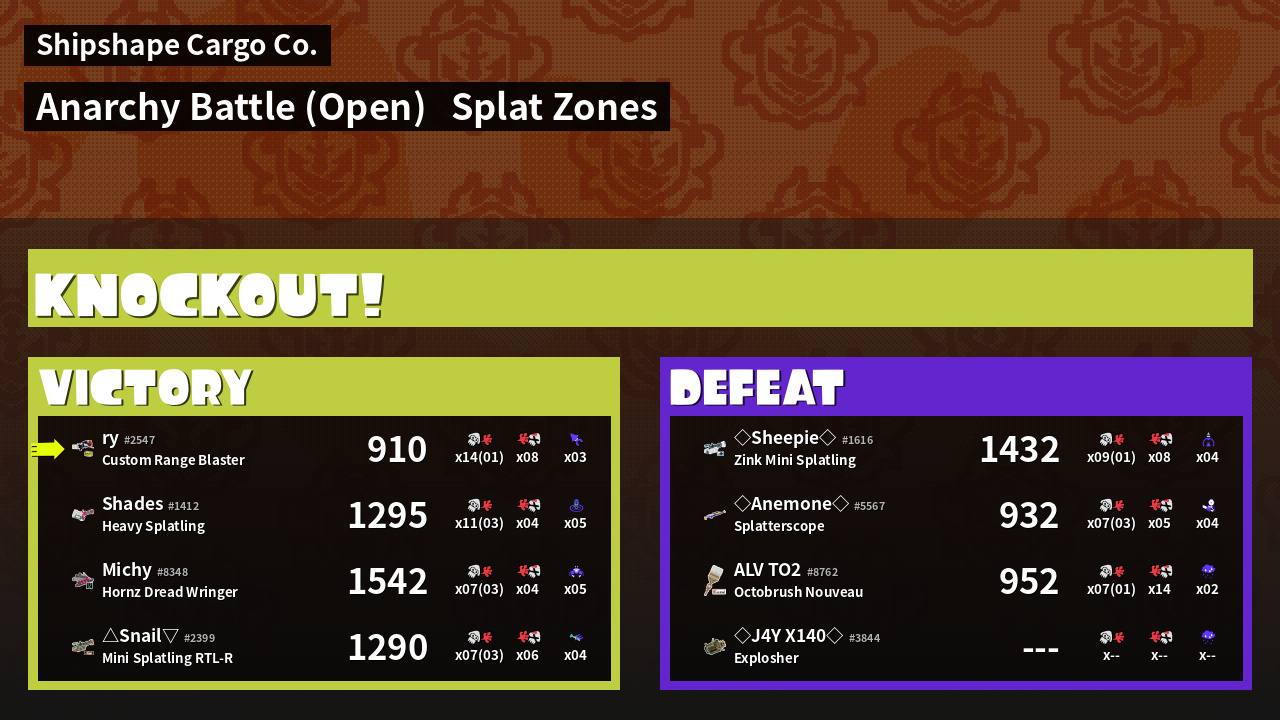 | Mode | Splat Zones - Anarchy Battle (Open) | ||