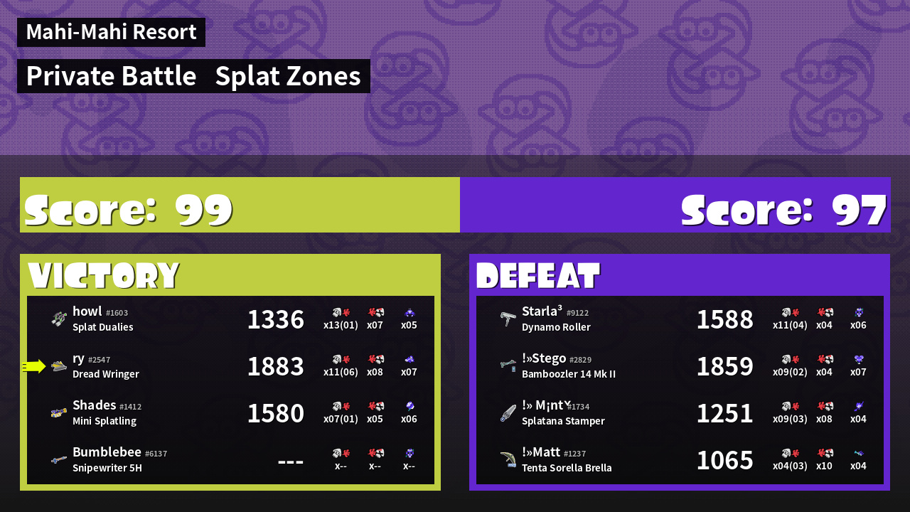 | Medals | #1 Splat Zone Inker #1 Turf Inker #1 Popular Target | ||