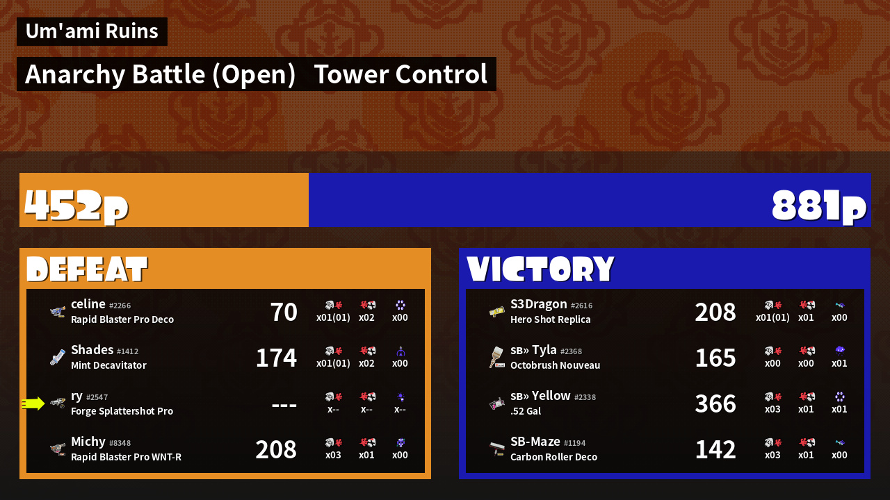 | Mode | Tower Control - Anarchy Battle (Open) | ||
