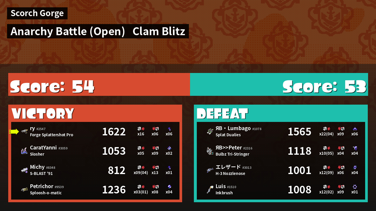 | Mode | Clam Blitz - Anarchy Battle (Open) | ||