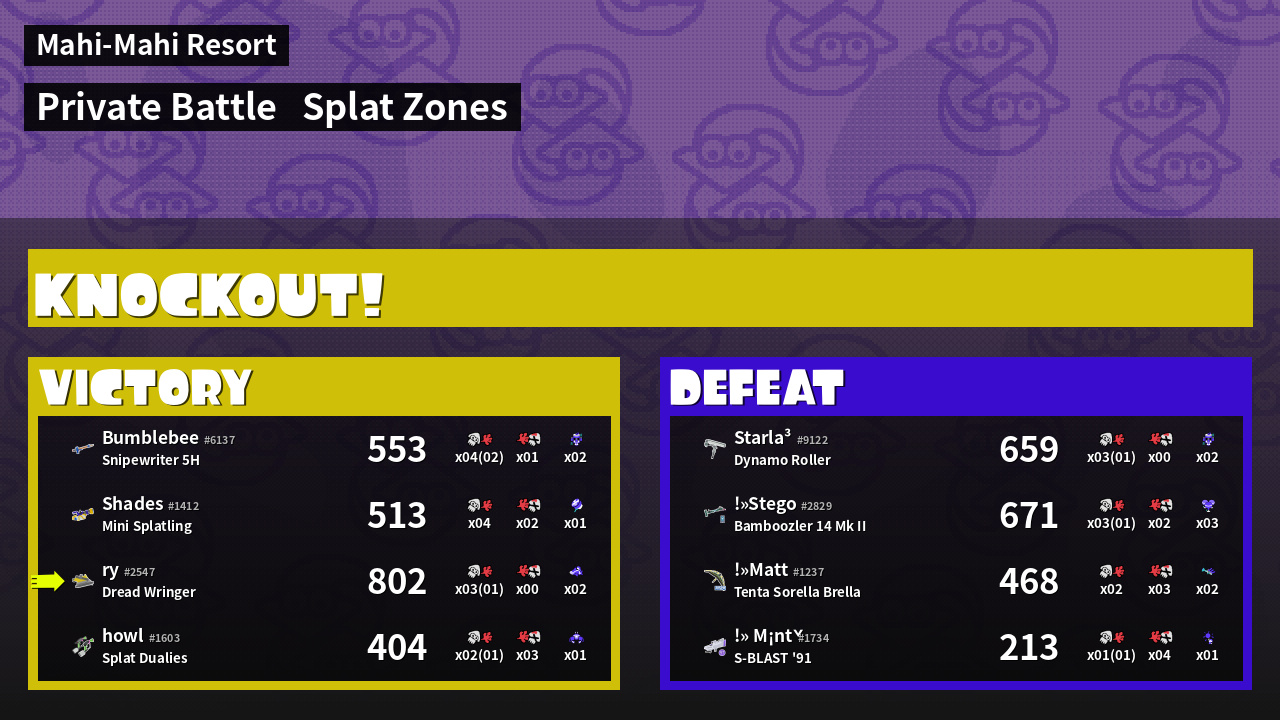 | Mode | Splat Zones - Private Battle | ||