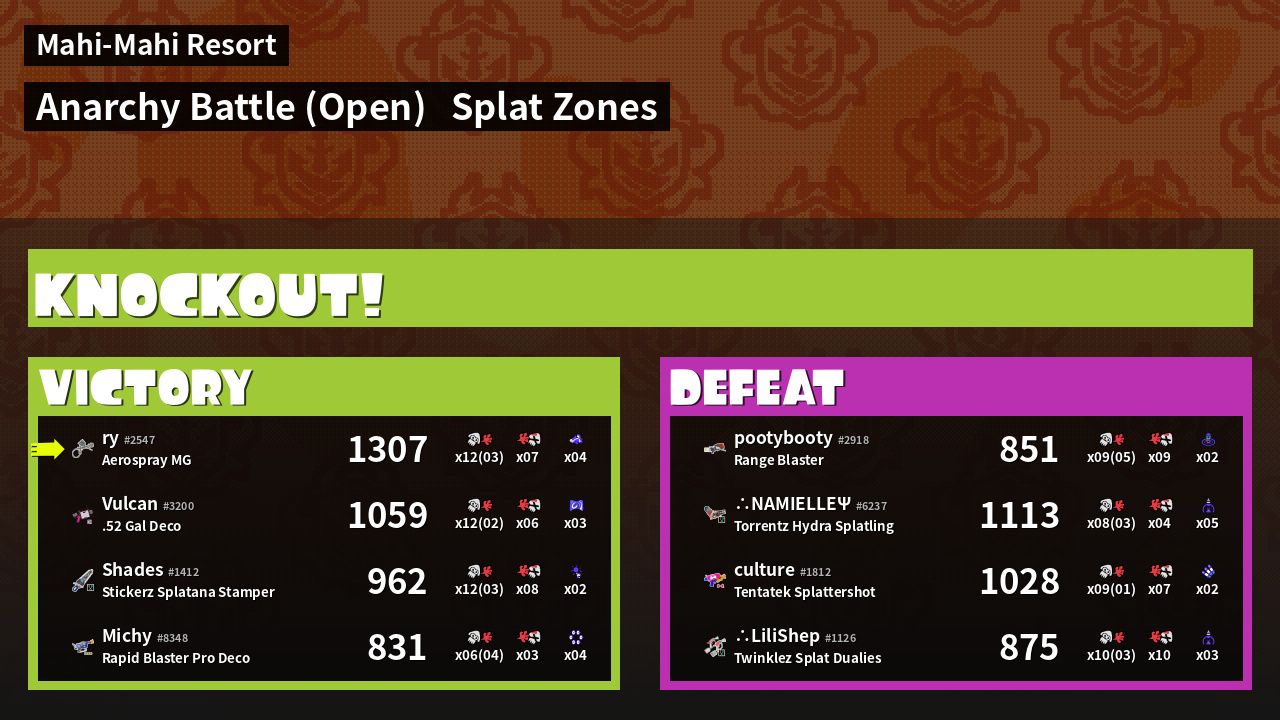| Mode | Splat Zones - Anarchy Battle (Open) | ||