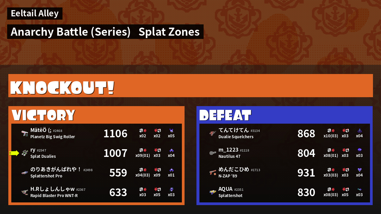 | Mode | Splat Zones - Anarchy Battle (Series) | ||