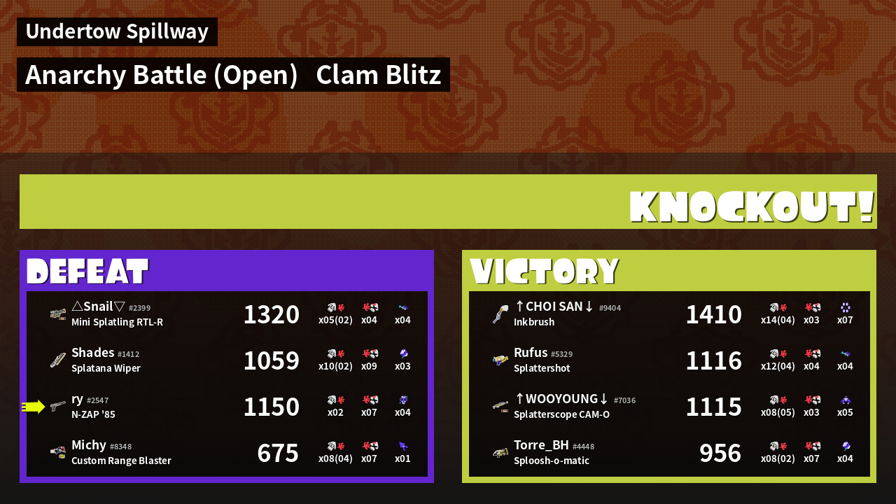 | Mode | Clam Blitz - Anarchy Battle (Open) | ||