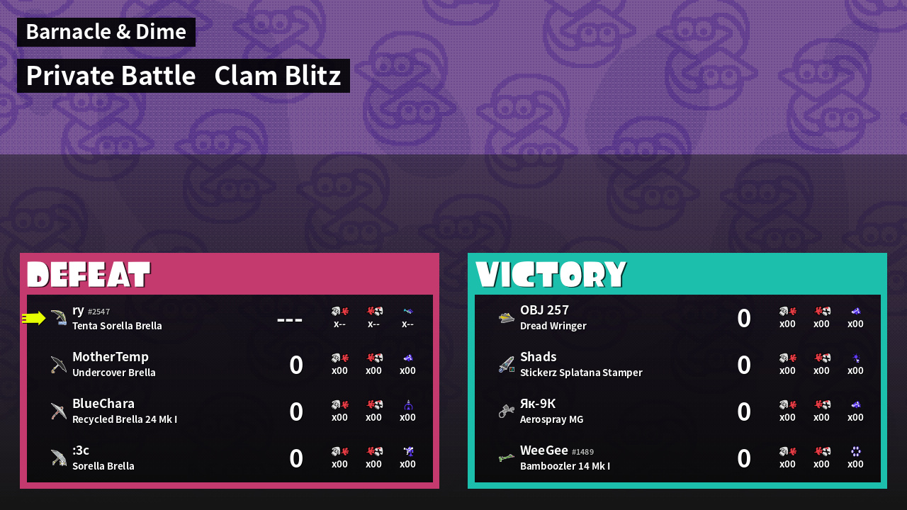 | Weapon | Tenta Sorella Brella ( Ink Mine / Trizooka) | ||