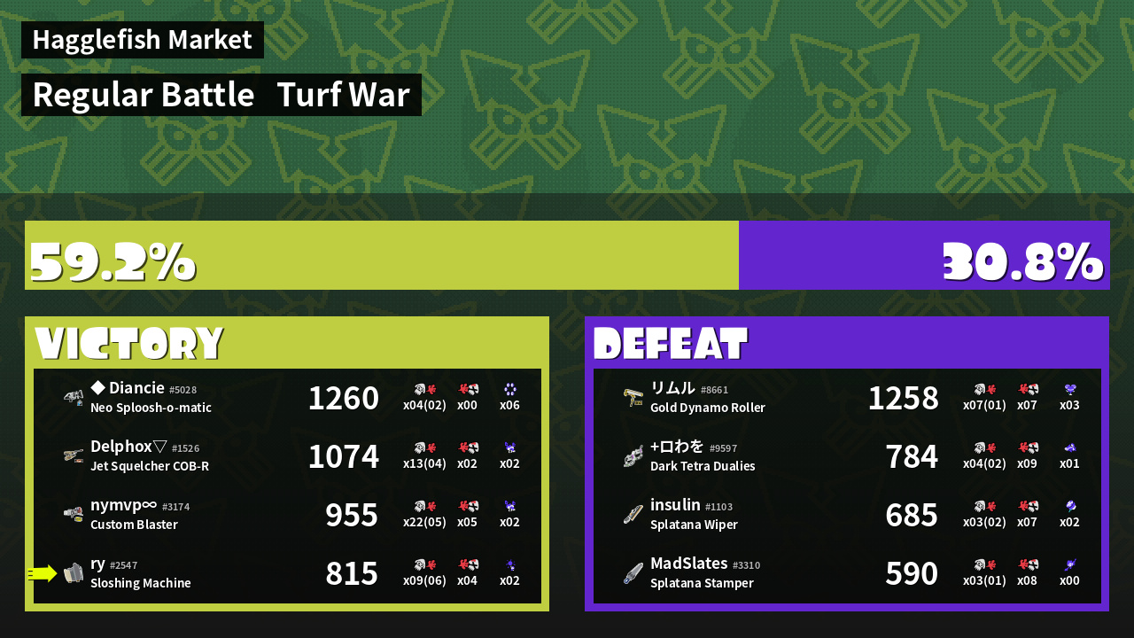 | Medals | #1 Splat Assister #1 Ink Consumer #2 Home-Base Inker | ||