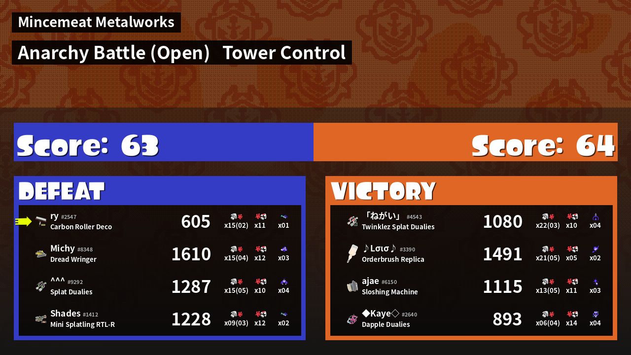 | Mode | Tower Control - Anarchy Battle (Open) | ||