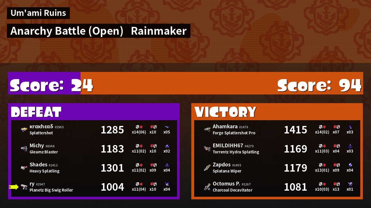 | Mode | Rainmaker - Anarchy Battle (Open) | ||