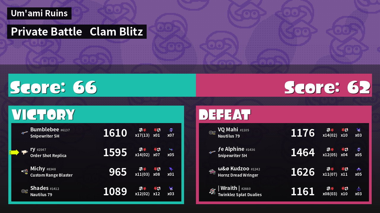 | Mode | Clam Blitz - Private Battle | ||