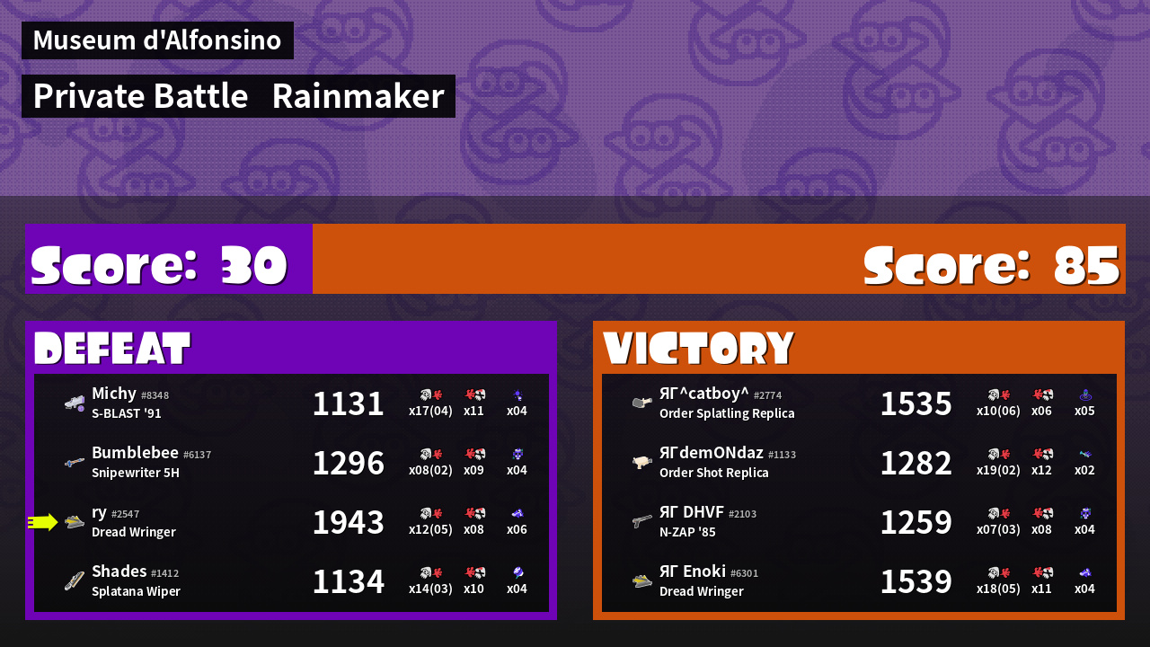 | Medals | #1 Turf Inker #1 Splat Assister First Splat! | ||