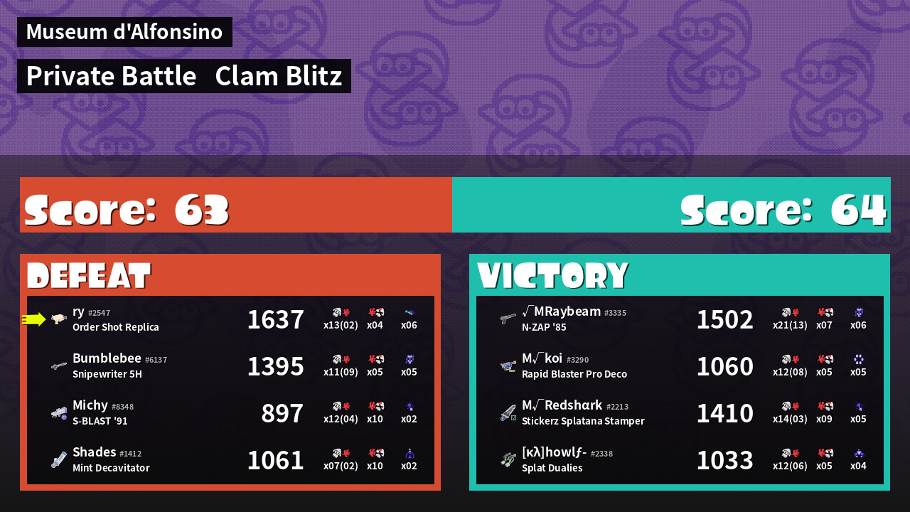 | Medals | #1 Overall Splatter #1 Clam Carrier #1 Turf Inker | ||