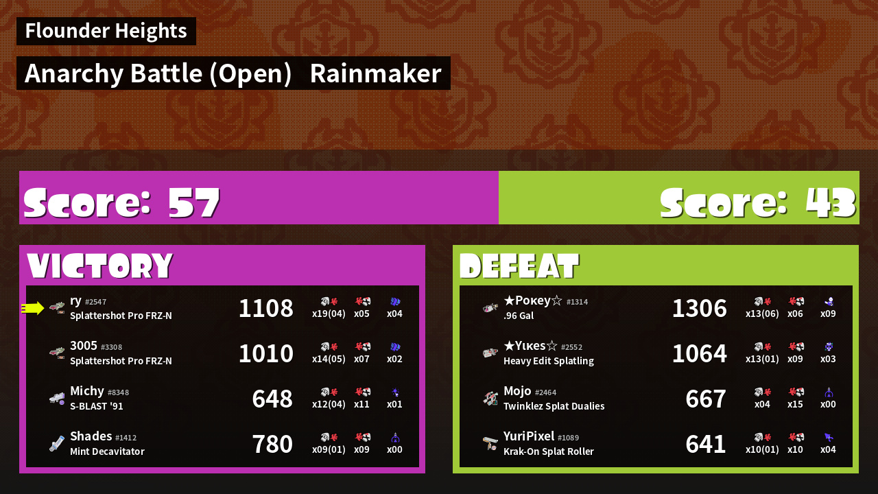 | Mode | Rainmaker - Anarchy Battle (Open) | ||