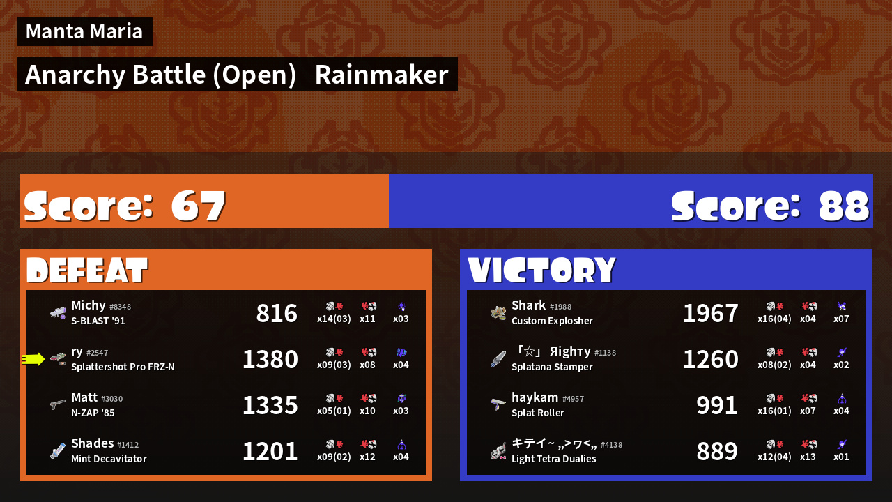 | Mode | Rainmaker - Anarchy Battle (Open) | ||