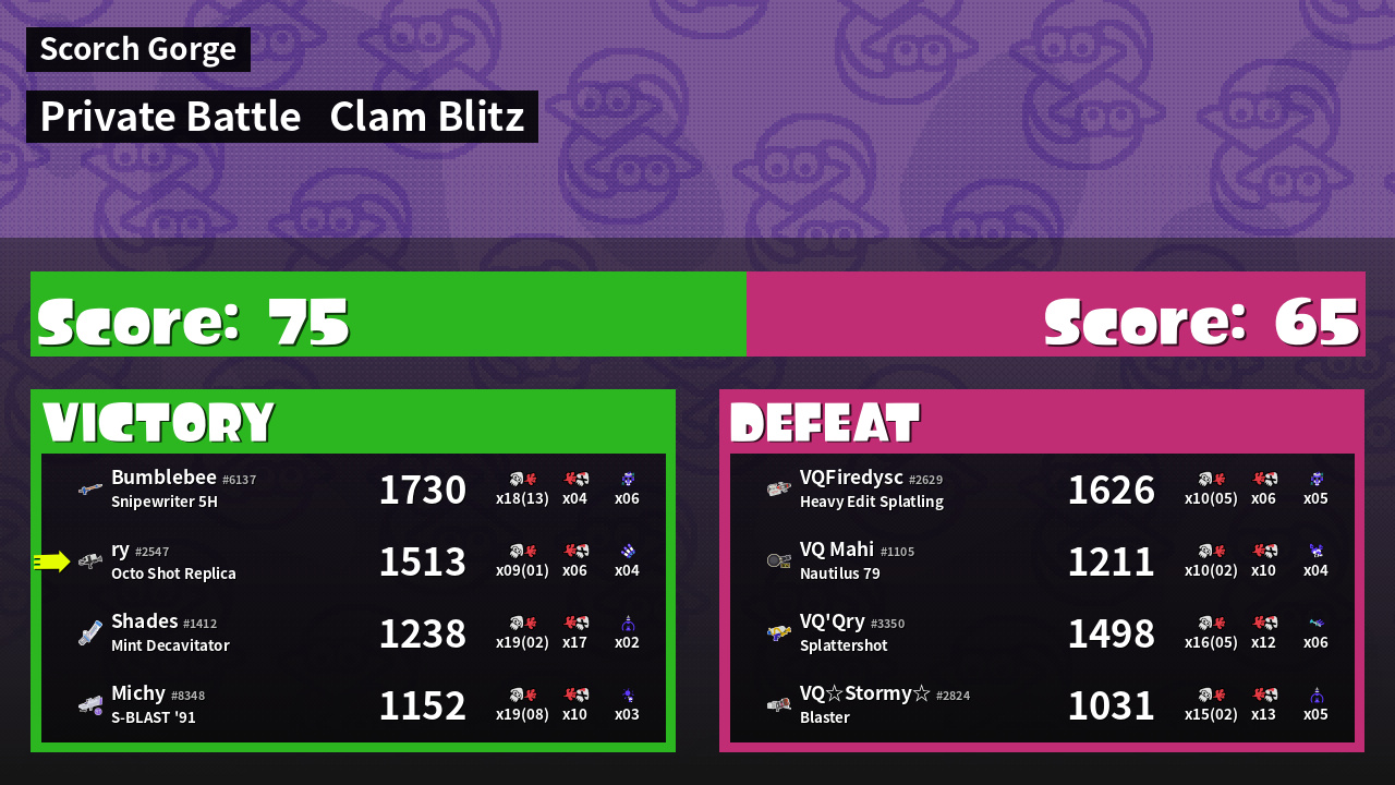 | Mode | Clam Blitz - Private Battle | ||
