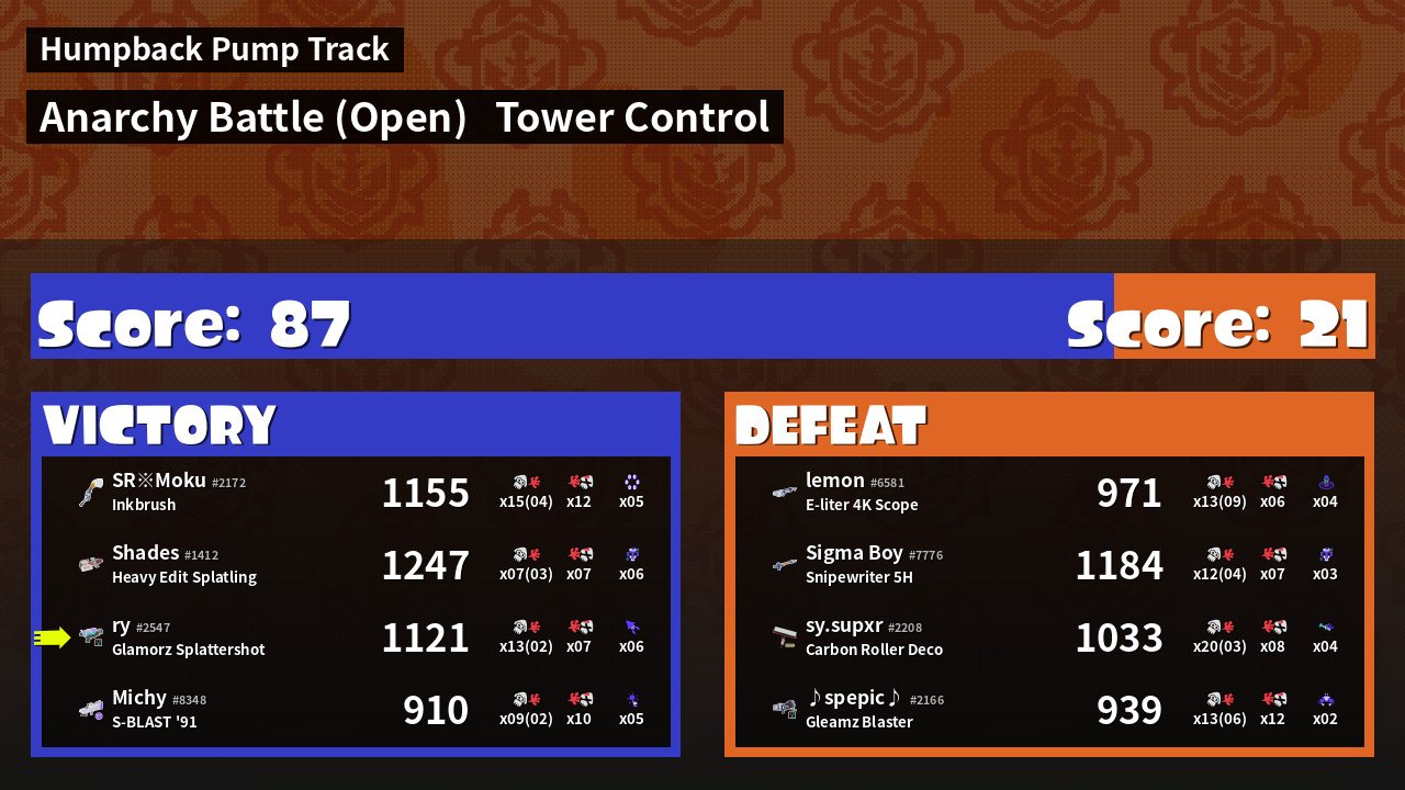 | Mode | Tower Control - Anarchy Battle (Open) | ||