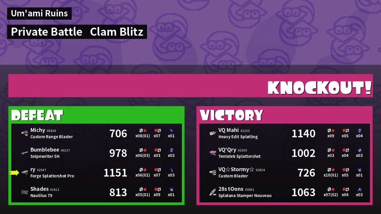 | Mode | Clam Blitz - Private Battle | ||