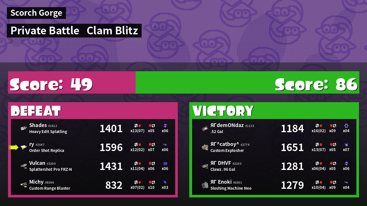 | Medals | #1 Score Booster #1 Turf Inker #1 Enemy Splatter | ||