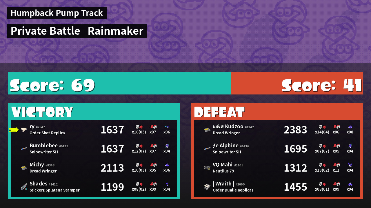 | Medals | #1 Overall Splatter #1 Popular Target #1 Enemy Splatter | ||
