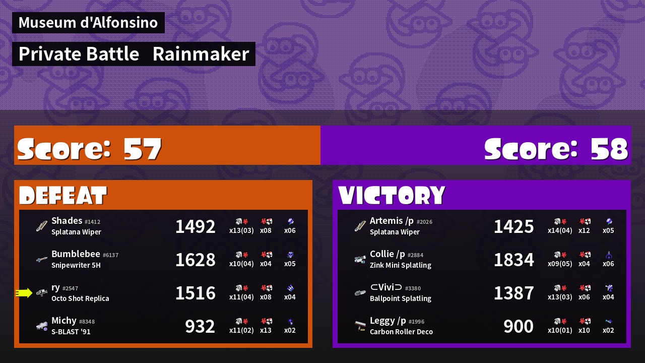 | Medals | #1 Splat Assister #2 Overall Splatter #2 Turf Inker | ||