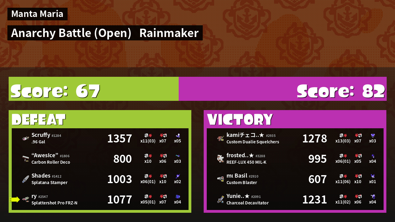 | Mode | Rainmaker - Anarchy Battle (Open) | ||