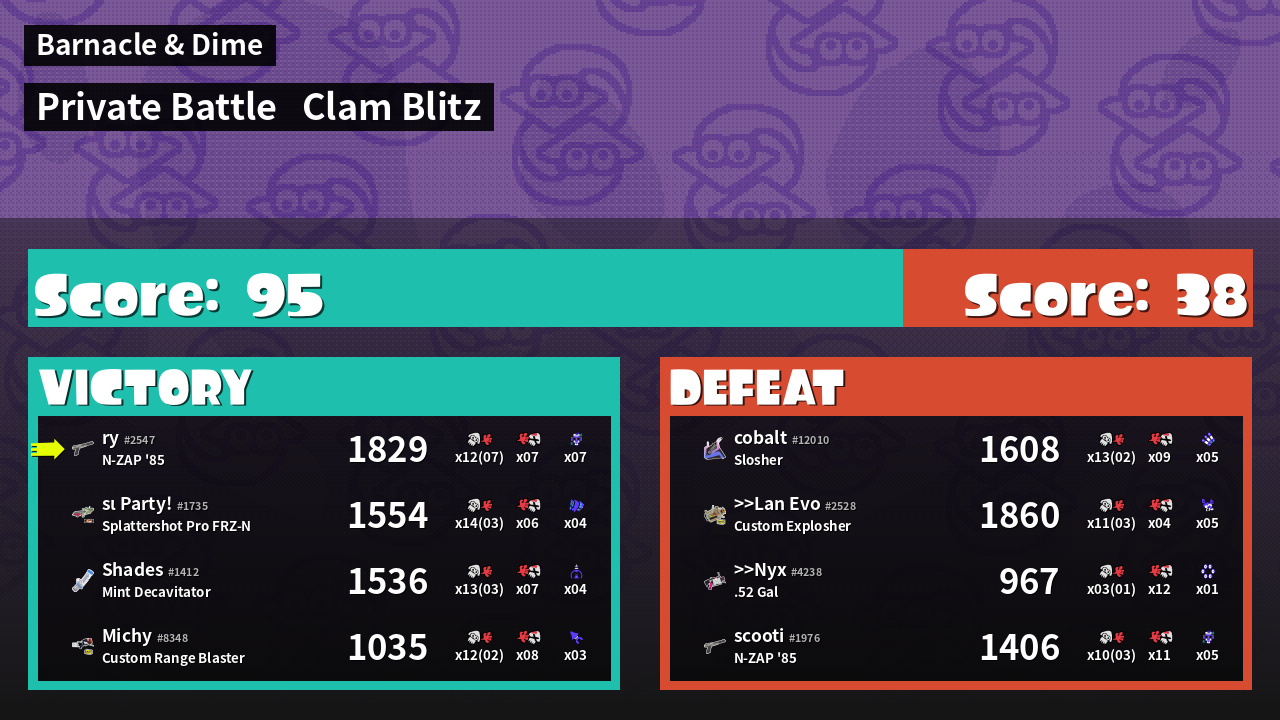 | Medals | #1 Score Booster #1 Clam Carrier #1 Turf Inker | ||