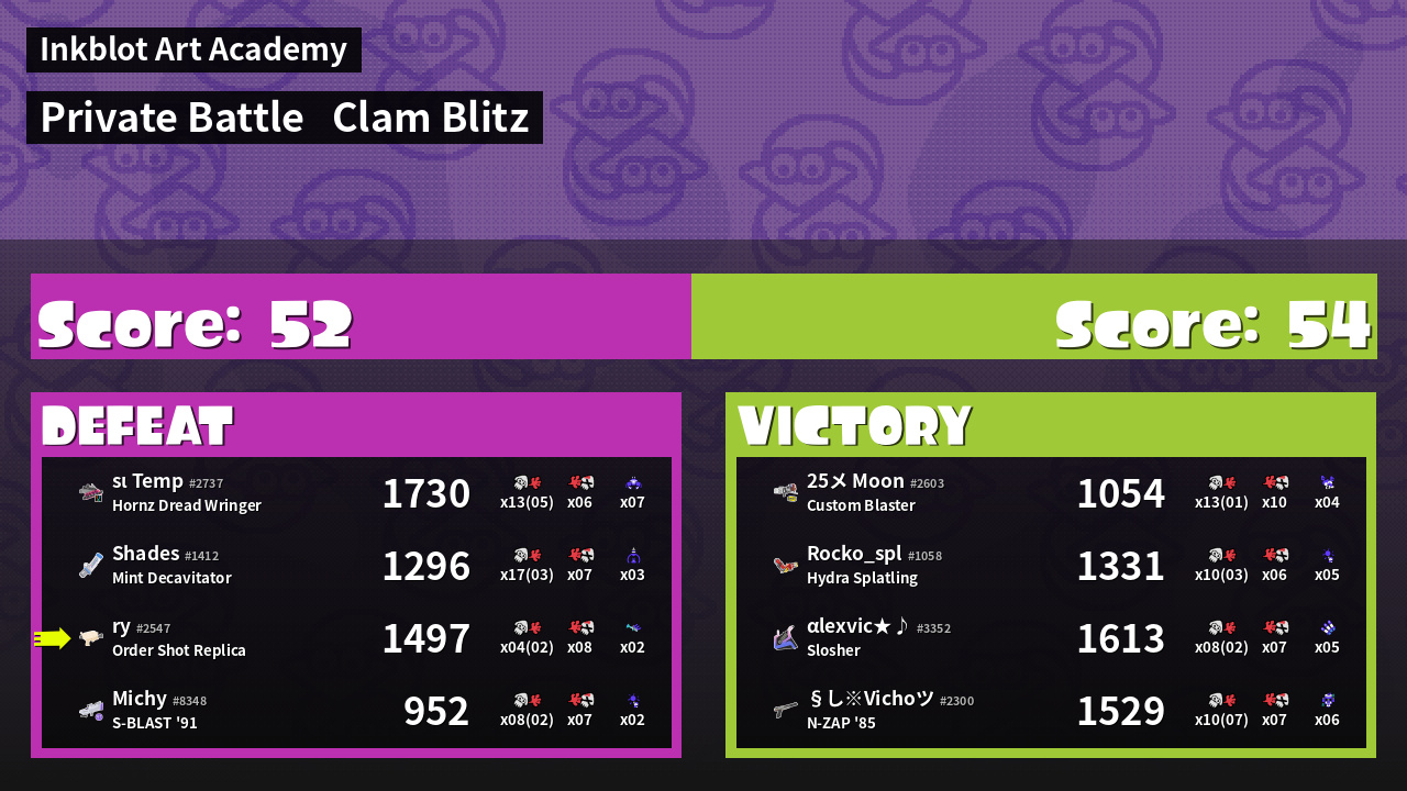 | Medals | #1 Score Booster #1 Damage Taker #1 Ink Consumer | ||