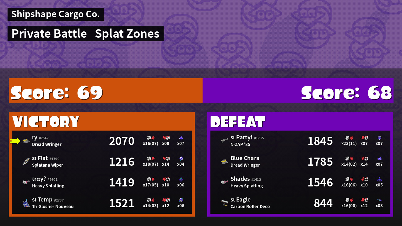 | Mode | Splat Zones - Private Battle | ||