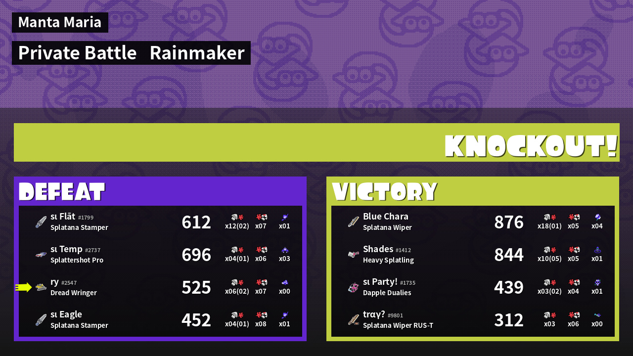| Medals | #1 Popular Target #1 Splat Assister #1 Rainmaker Carrier | ||