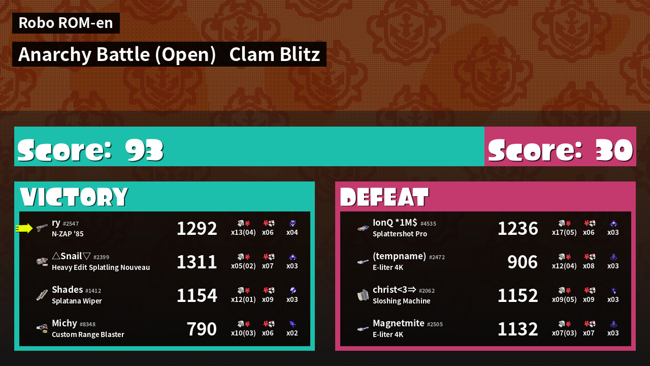 | Mode | Clam Blitz - Anarchy Battle (Open) | ||