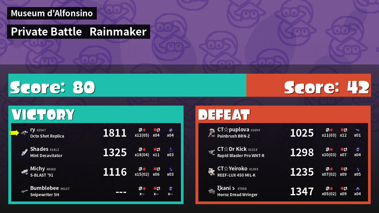 | Medals | #1 Turf Inker #1 Super Jump Spot #1 Splat Assister | ||