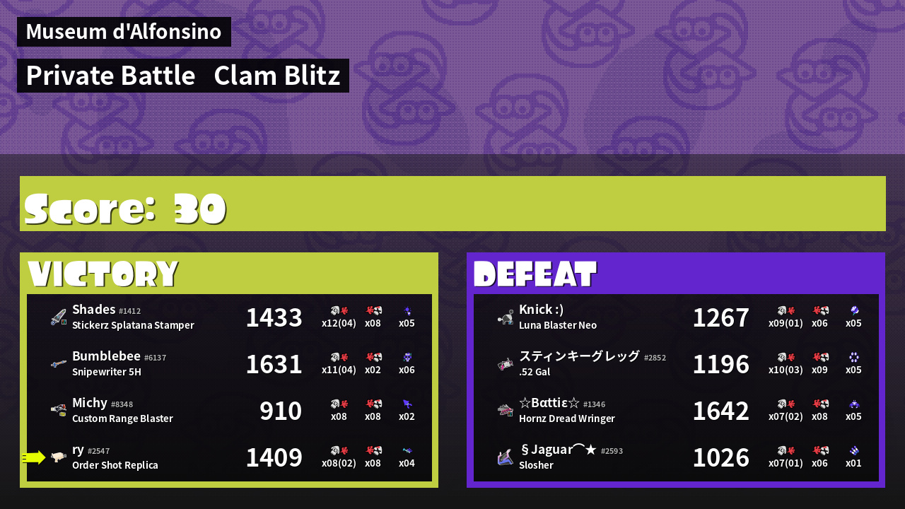 | Mode | Clam Blitz - Private Battle | ||