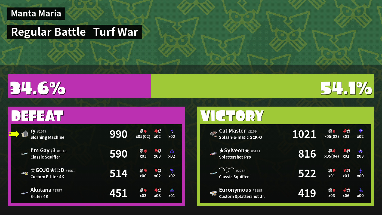 | Mode | Turf War - Regular Battle | ||
