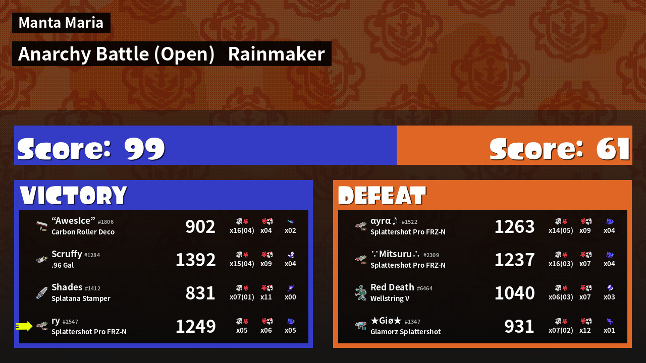 | Mode | Rainmaker - Anarchy Battle (Open) | ||