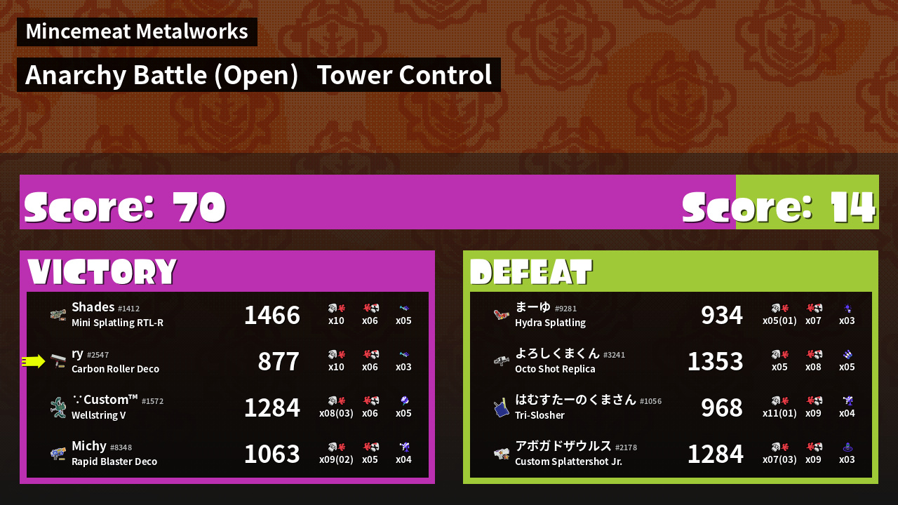 | Mode | Tower Control - Anarchy Battle (Open) | ||