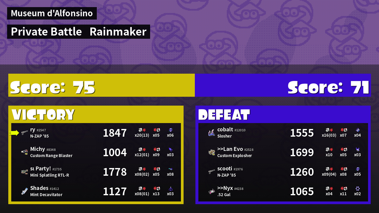 | Medals | #1 Overall Splatter Record-Score Setter #1 Turf Inker | ||