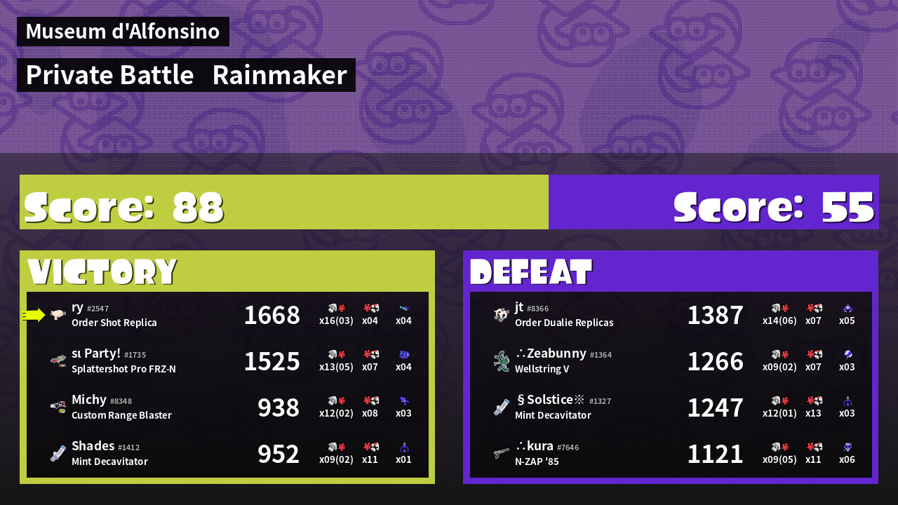 | Medals | #1 Overall Splatter #1 Score Booster Record-Score Setter | ||