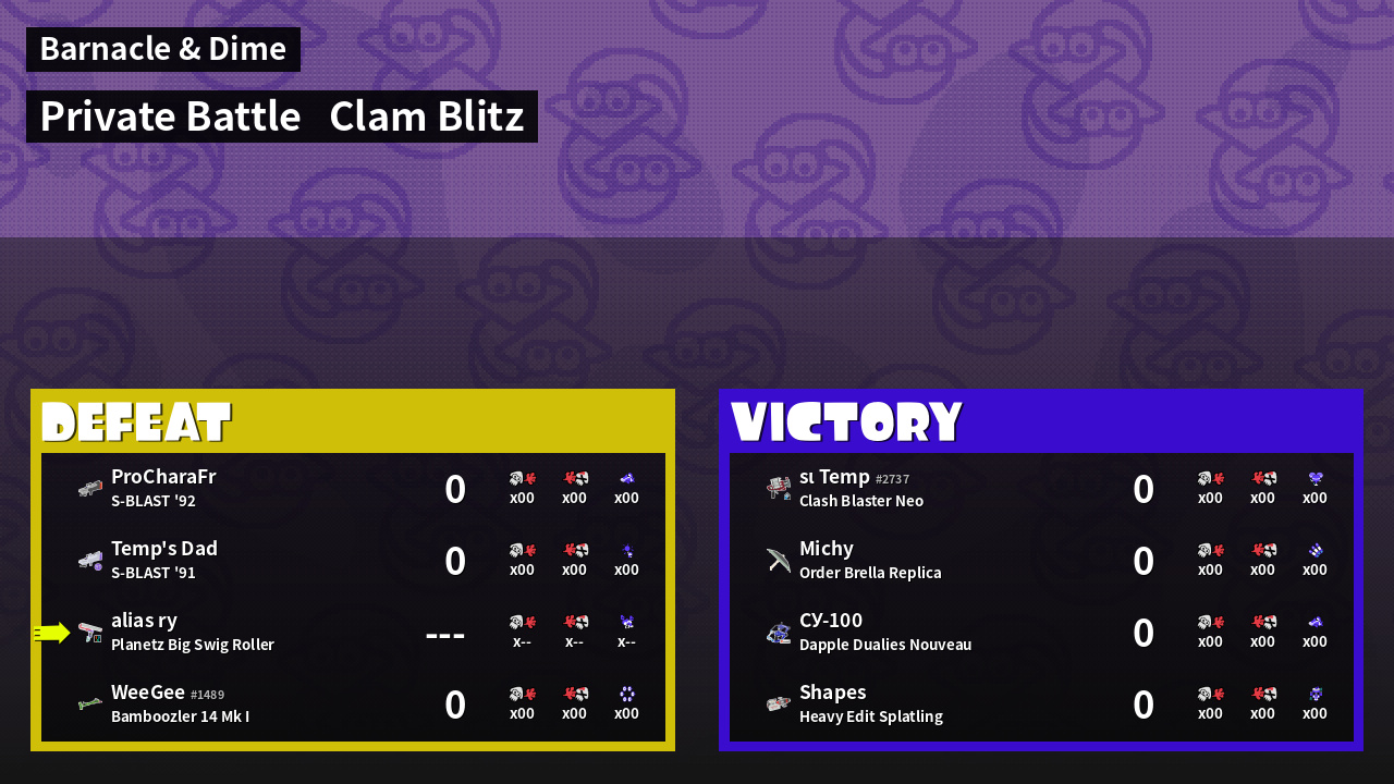 | Mode | Clam Blitz - Private Battle | ||