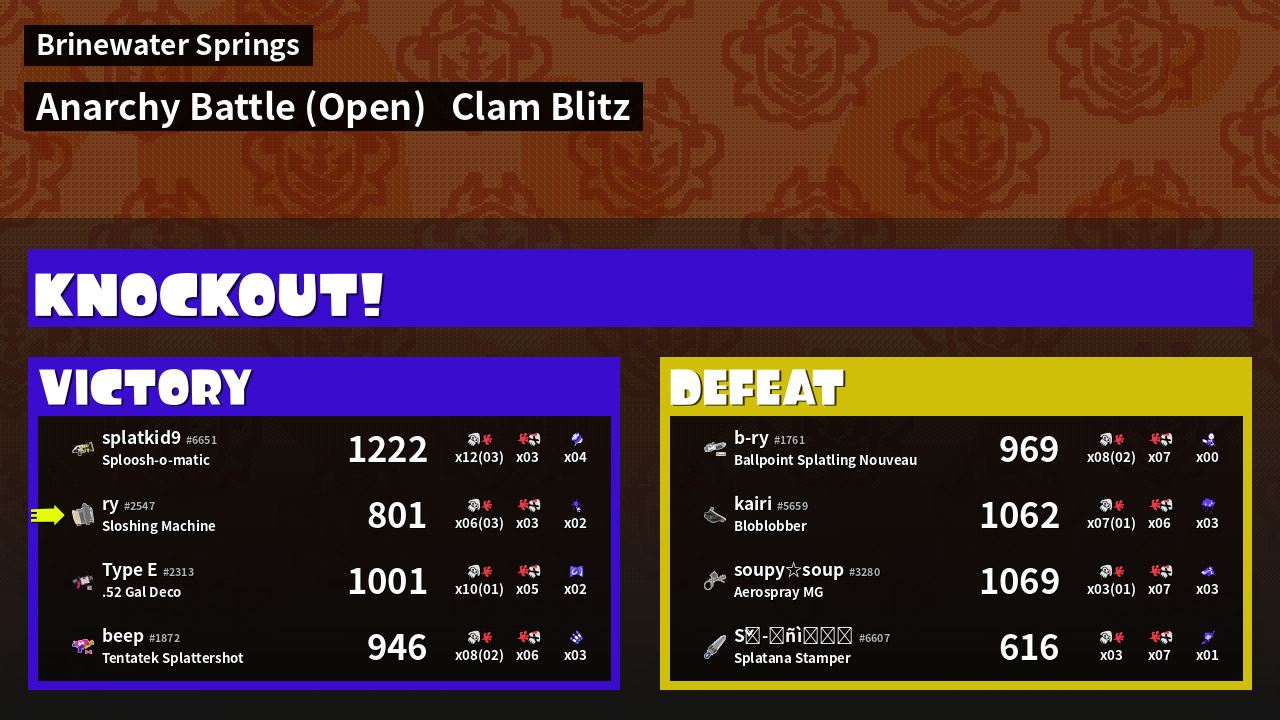 | Mode | Clam Blitz - Anarchy Battle (Open) | ||
