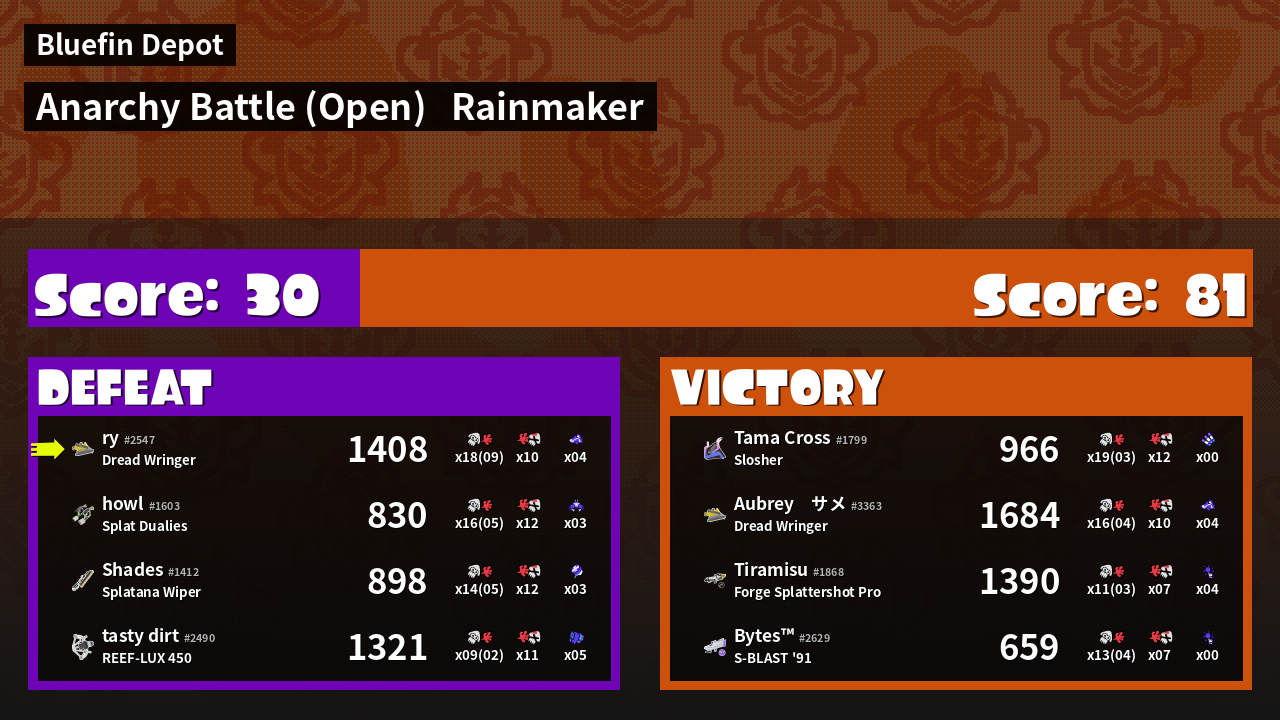 | Mode | Rainmaker - Anarchy Battle (Open) | ||