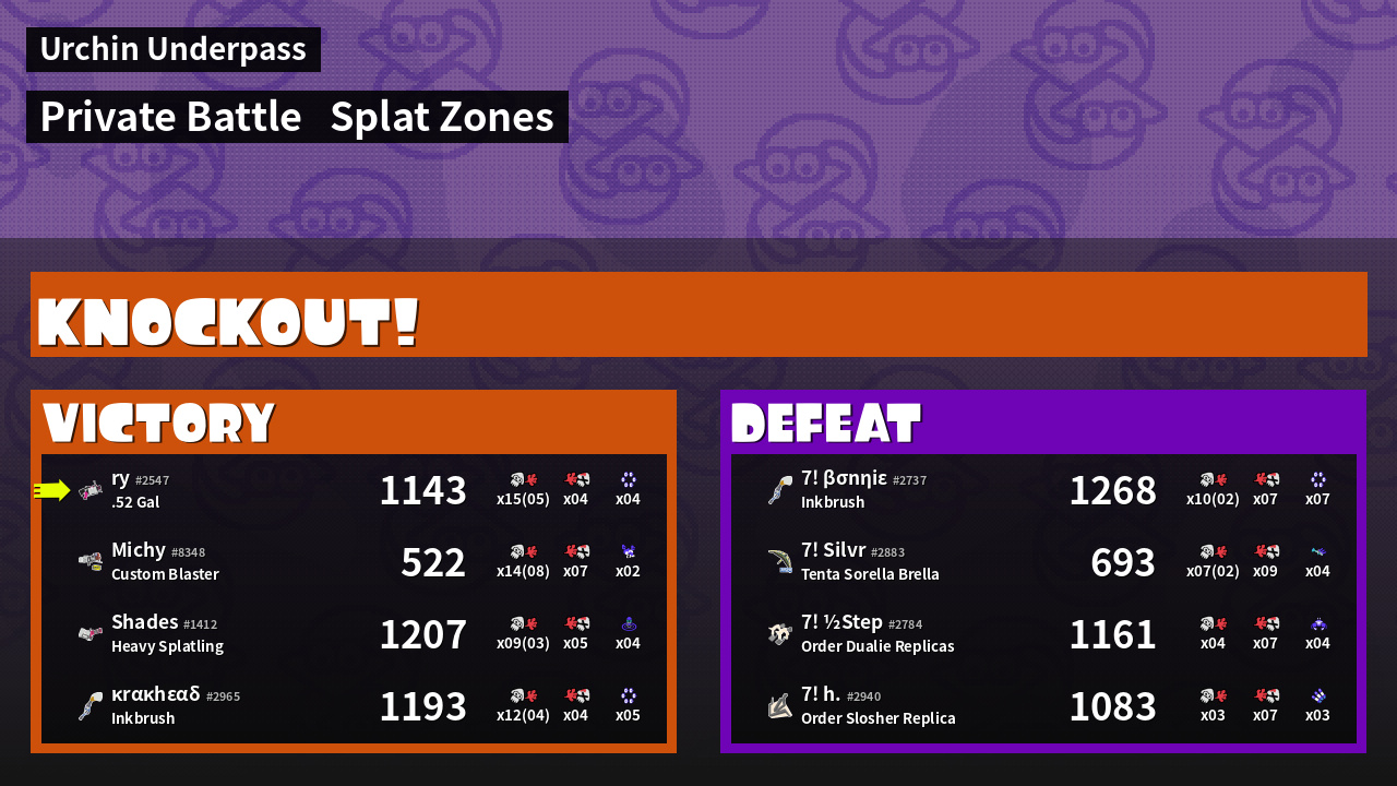 | Medals | #1 Overall Splatter #1 Splat Zone Inker #1 Splat Zone Guard | ||
