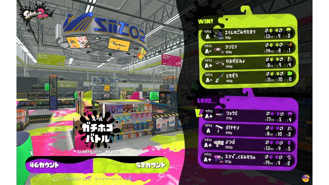 | Name | Weapon | Level | Rank | Inked | k+a/sp | k/d |