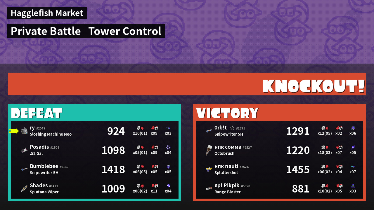 Kills / Deaths | 9 + 1 / 9 = Kill Ratio: 1.00 | ||